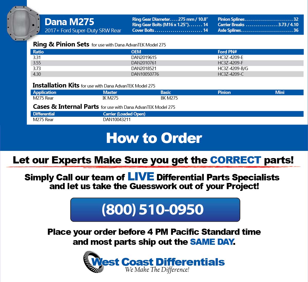 For the fastest and most accurate service, call our Differential Parts Experts for immediate assistance. We are available to help Monday thru Friday from 8 AM to 5 PM Pacific Standard Time, and most orders placed by 4 PM ship out the SAME DAY!