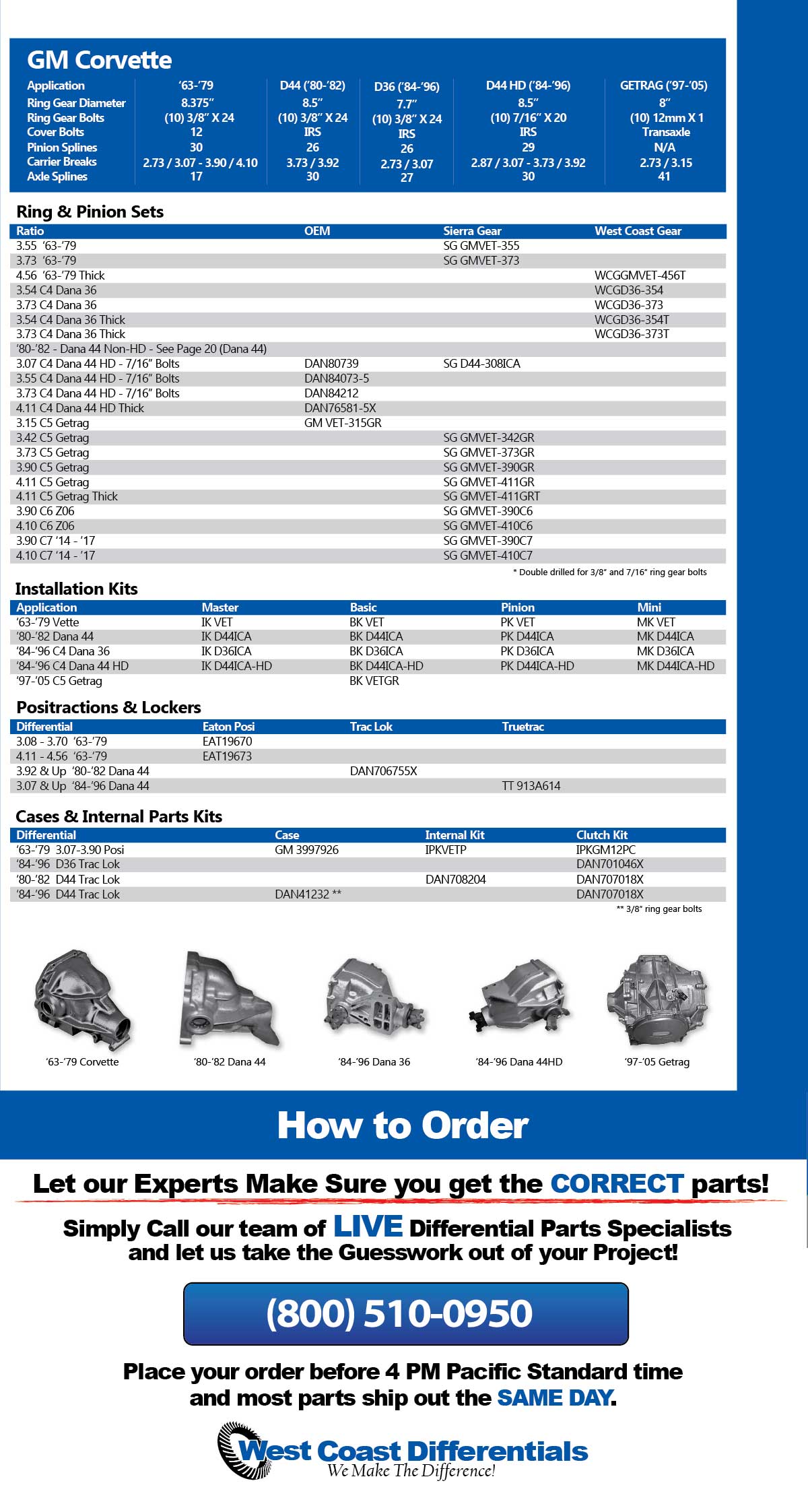 For the fastest and most accurate service, call our Differential Parts Experts for immediate assistance. We are available to help Monday thru Friday from 8 AM to 5 PM Pacific Standard Time, and most orders placed by 4 PM ship out the SAME DAY!